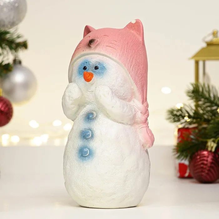 Фигурка гипс «Снеговик в розовой шапке», 18 см — Характеристики