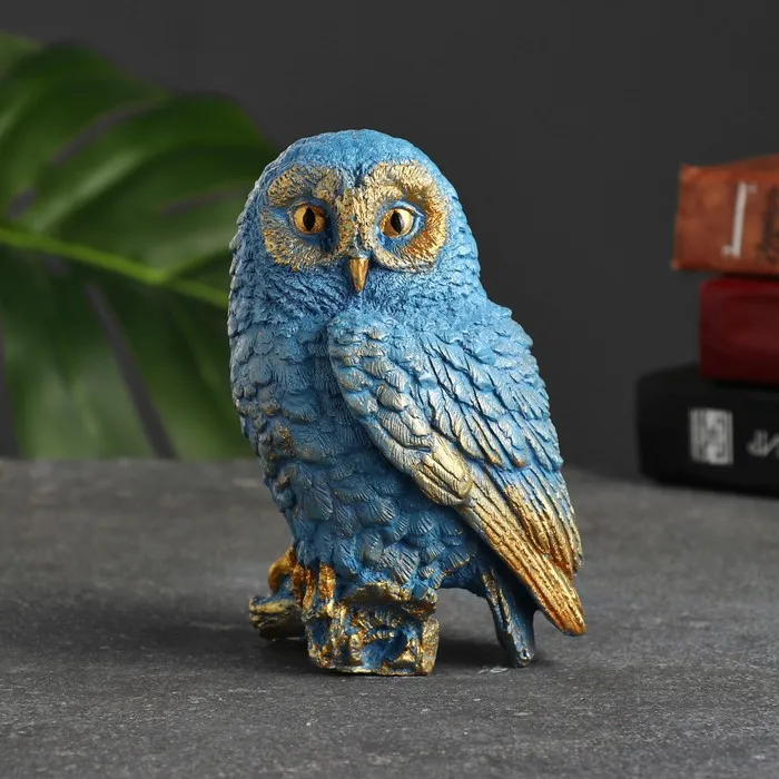 Фигурка гипс «Сова на пеньке», серо-голубой, 10×9×14.5 см, МИКС — Характеристики