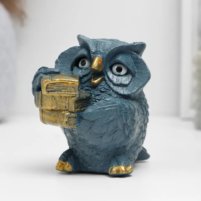 Фигурка гипс «Сова с книгами», серо-голубой, 10×6×6 см — Характеристики