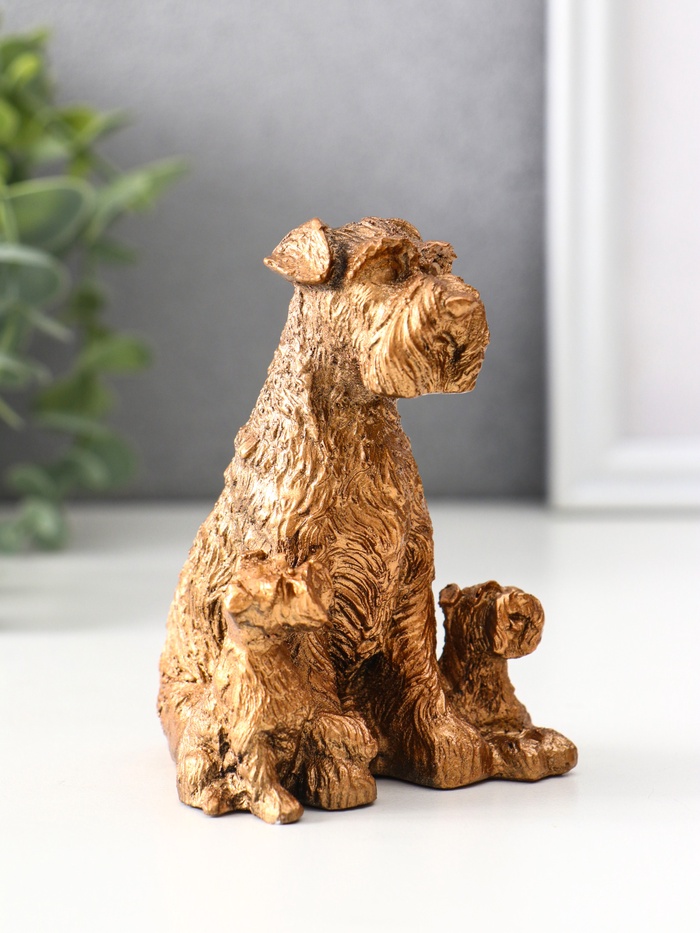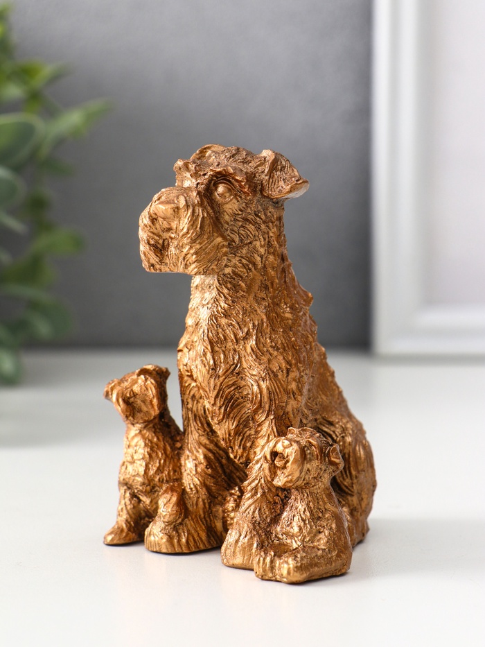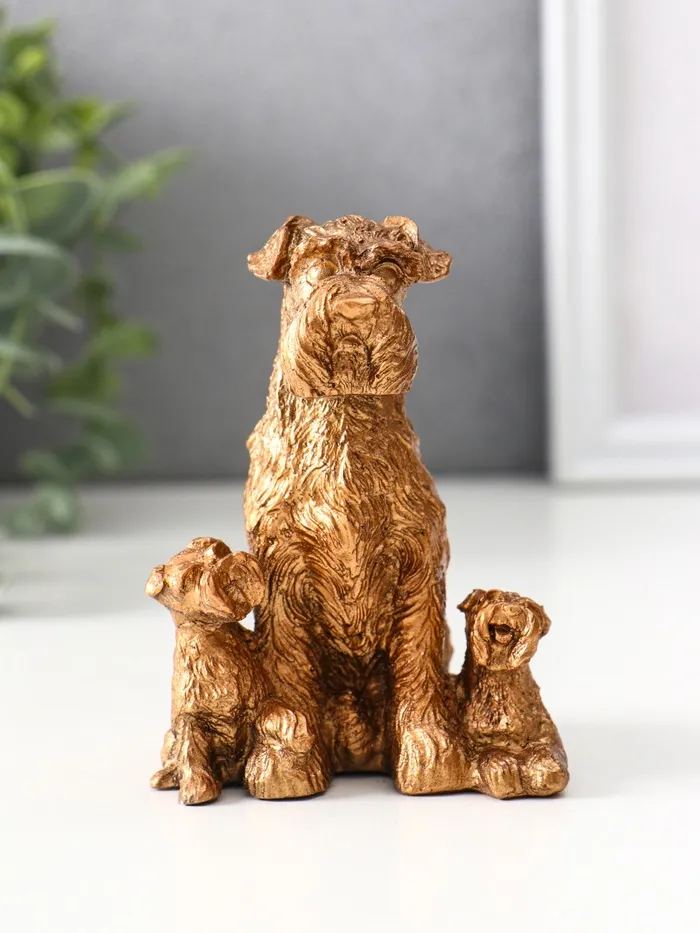 Представляем изящное воплощение тепла и семейных ценностей — гипсовую фигурку, выполненную в виде трогательной сцены с терьером и его щенками. Её компактные размеры (10×7×7.5 см) делают её идеальным аксессуаром для украшения полки, стола или каминной зоны. Благородный бронзовый оттенок добавляет изделию элегантности и универсальности, позволяя органично вписаться в любой интерьер.