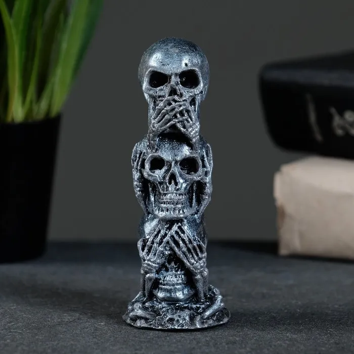 Фигурка гипс «Три черепа», состаренное серебро, 10×4хх4 см — Характеристики