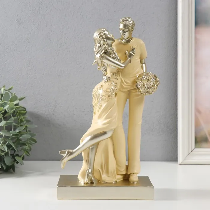 Сувенир полистоун "Нежная встреча" бежевый с золотом 14,5х7,1х27 см