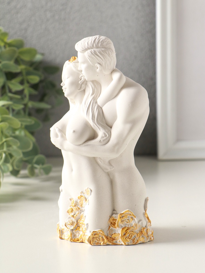 Фигурка гипс «Влюбленные», 14×6 см, белый с позолотой — Характеристики