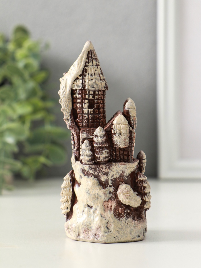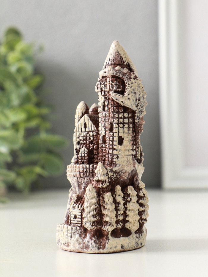 Эта коричневая гипсовая фигурка замка станет изящным акцентом для вашего интерьера или тематической композиции. Универсальный дизайн делает её уместной в любое время года, открывая пространство для творчества.