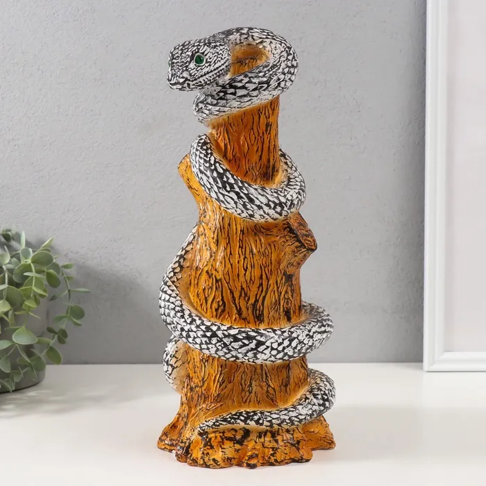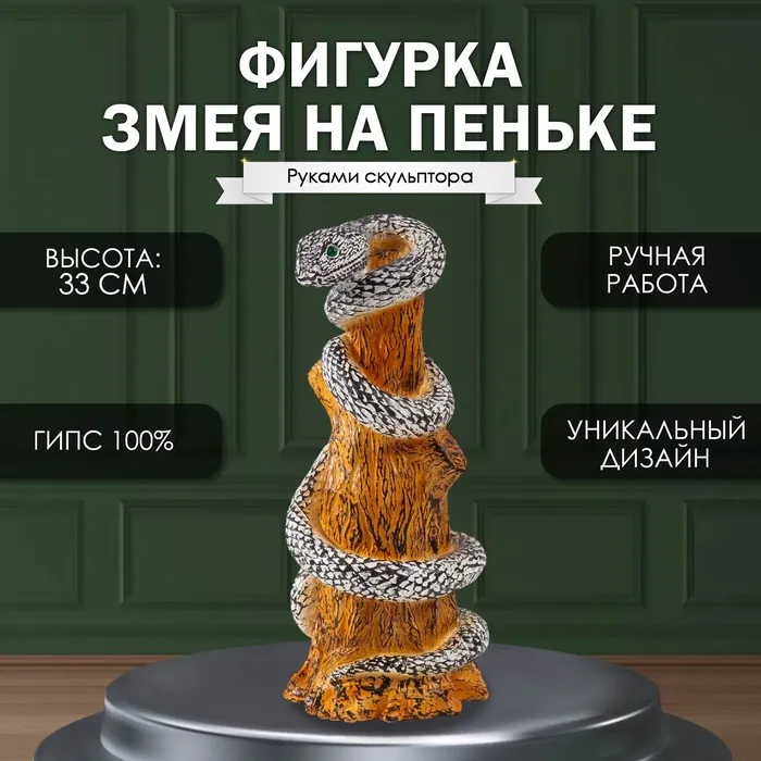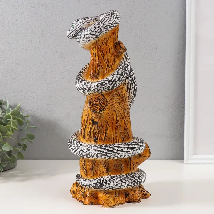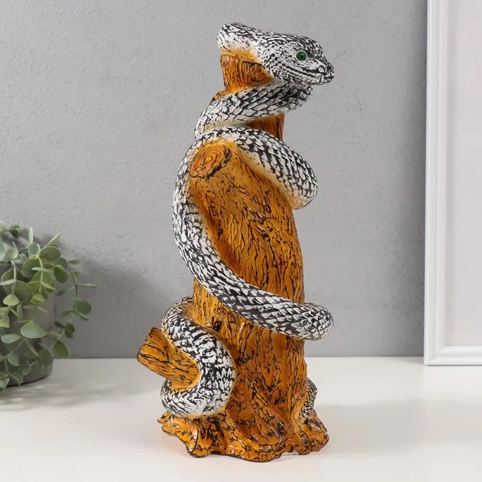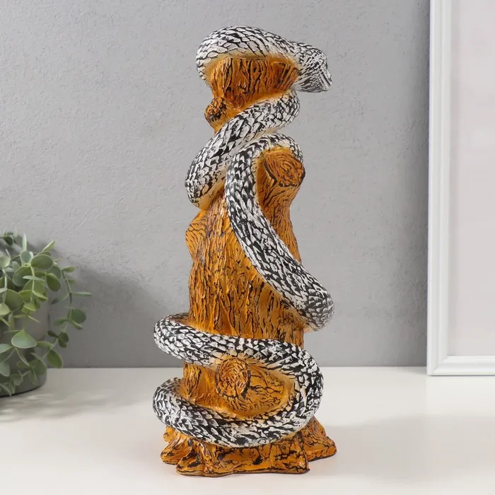 Фигурка гипс «Змея на пеньке» 33×14×15 см, чёрно-белый — Характеристики