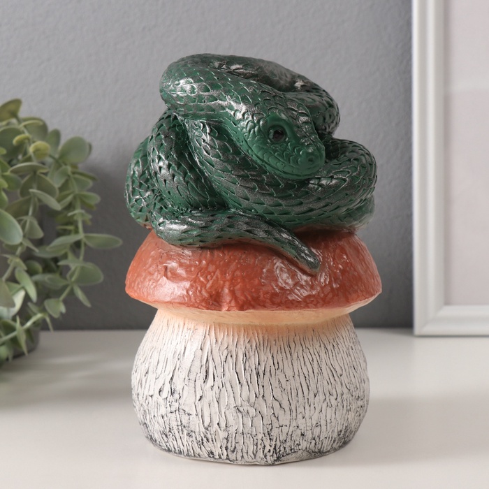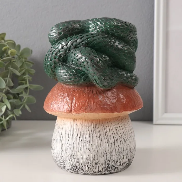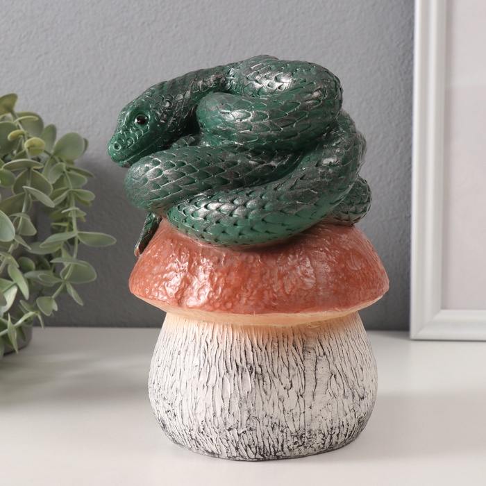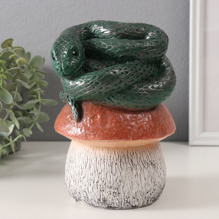 Фигурка гипс «Змейка на грибе», 11×11×18 см, т. зелёный