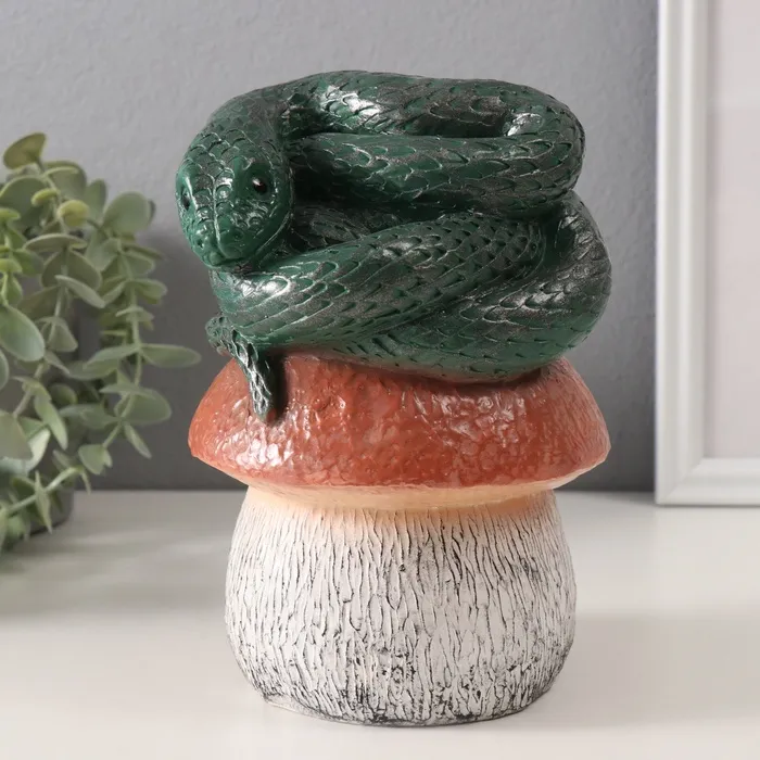 Фигурка гипс «Змейка на грибе», 11×11×18 см, т. зелёный — Характеристики
