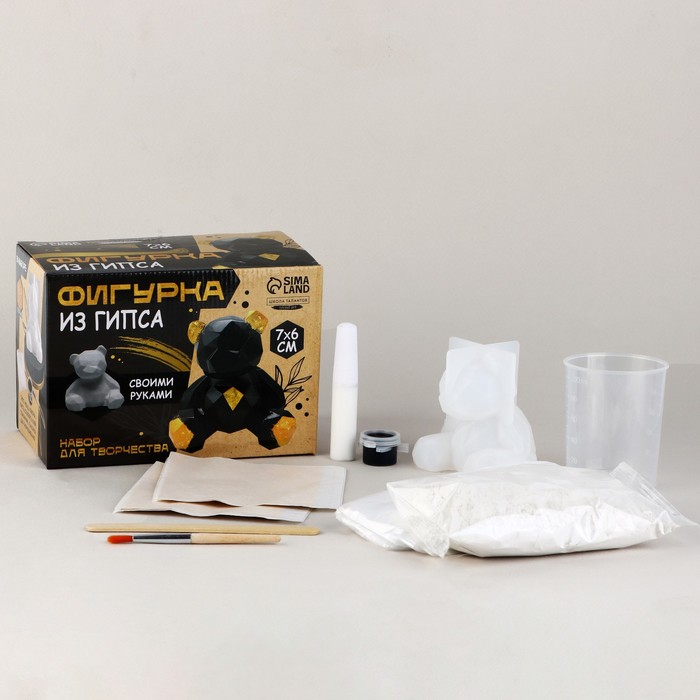 Фигурка гипсовая под раскраску своими руками «Полигональный гипсовый мишка», 7 х 6 см, набор для создания — Характеристики