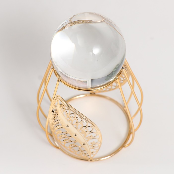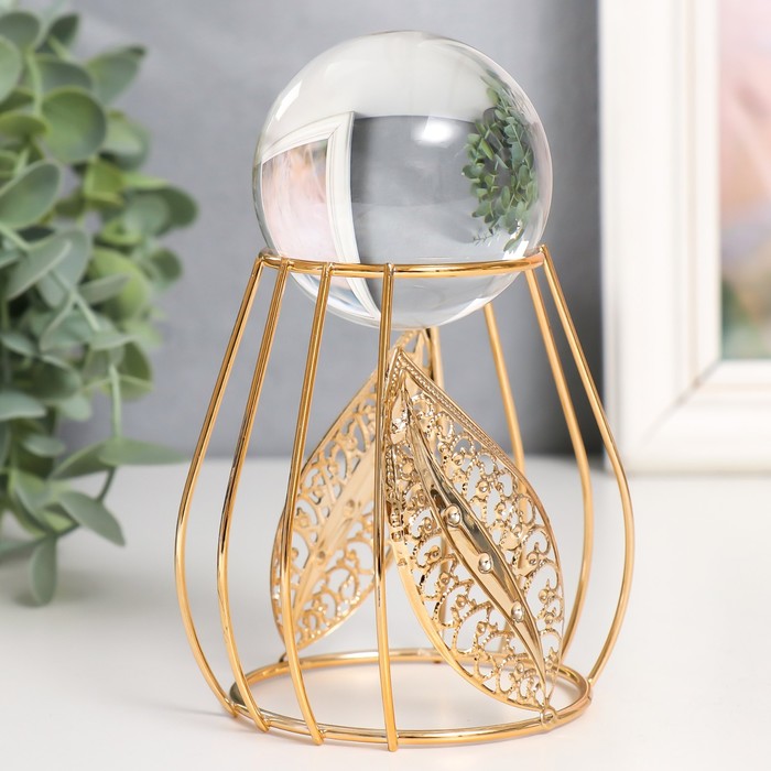 Фигурка интерьерная «Ажурные листья и шар», d=6 см, металл, стекло под золото, 9.5×9×14 см — Характеристики