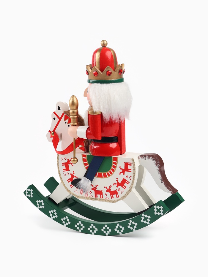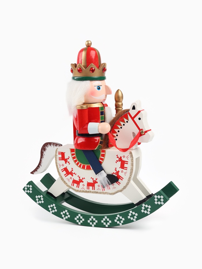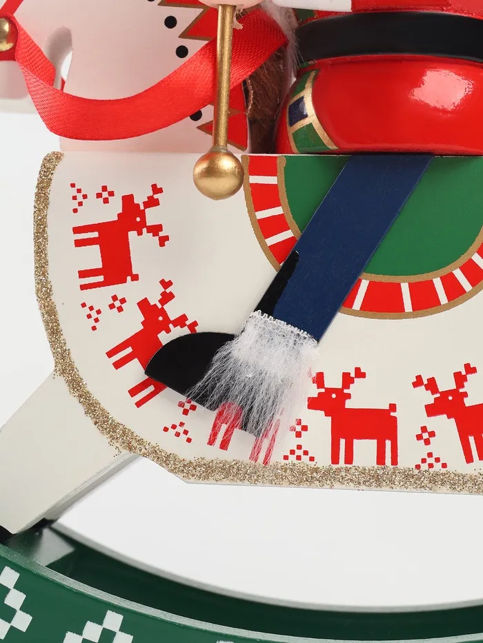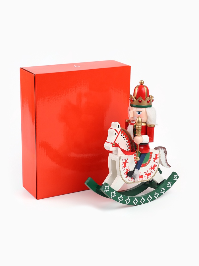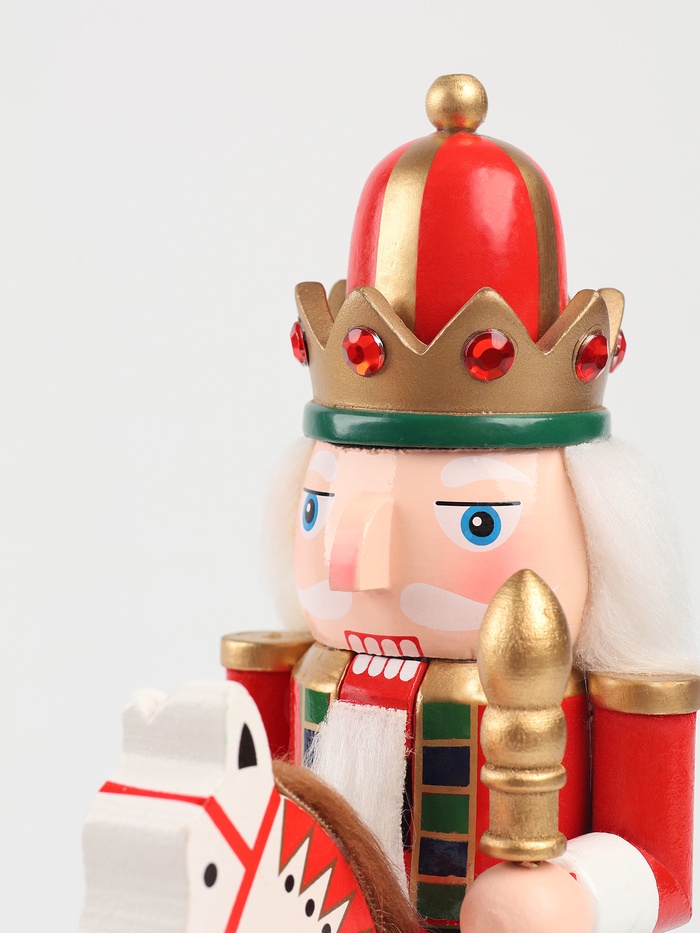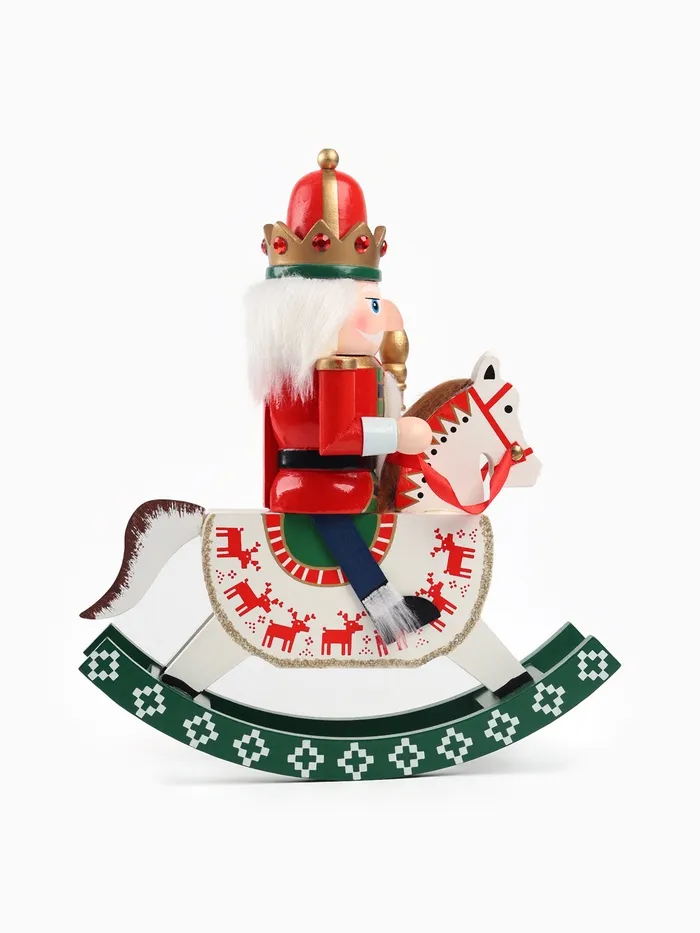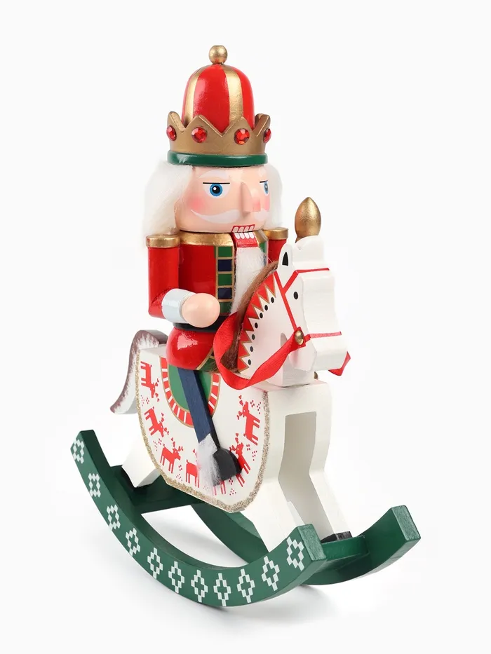 Деревянный Щелкунчик на лошадке — изящное воплощение рождественского волшебства. Эта 28-сантиметровая фигурка станет украшением праздничного интерьера или памятным подарком для ценителей ручной работы. Теплота натурального дерева и детализированная резьба придают ей особый шарм, напоминая о традициях старинных сказок.