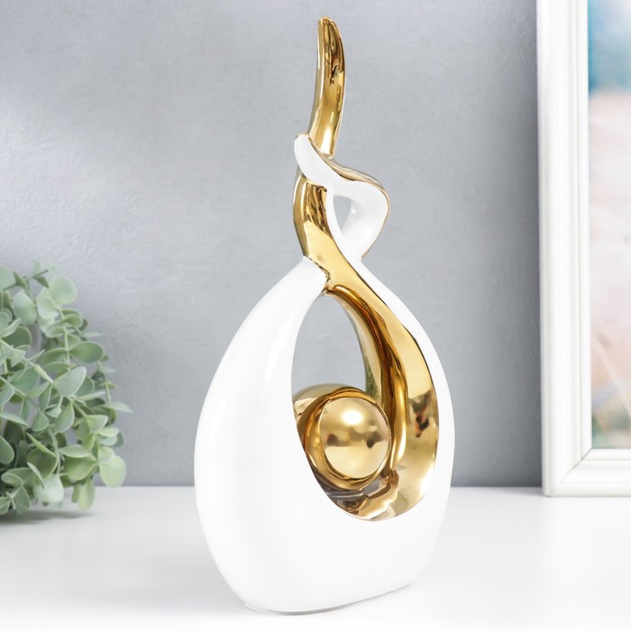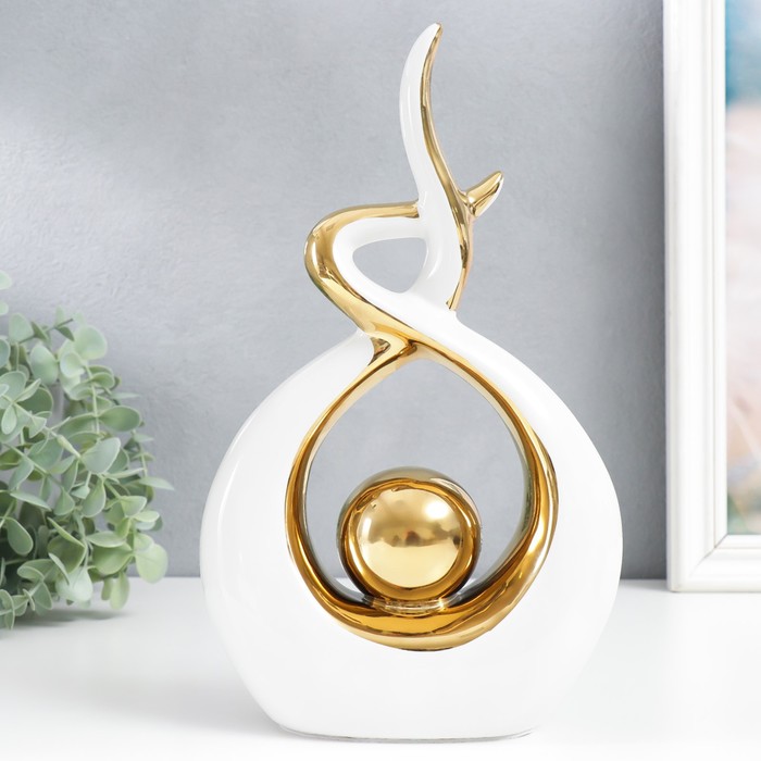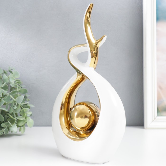 Фигурка керамика «Абстракция бесконечности. Прикосновение. Шар», белый с золотом, 28×6×17 см — Характеристики