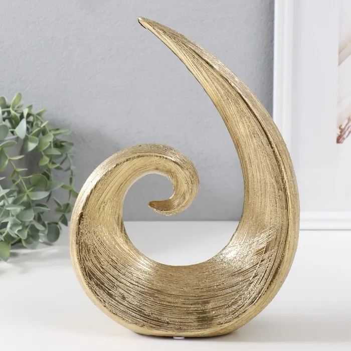 Позвольте представить вам изысканное произведение искусства, в котором гармонично сочетаются современный дизайн и классическая элегантность. Эта керамическая фигурка с абстрактной формой волны, покрытая золотистым оттенком, станет ярким акцентом любого интерьера. Высота изделия — 29 см — делает его заметным, но не доминирующим элементом декора, который органично впишется в пространство гостиной, спальни или офиса.