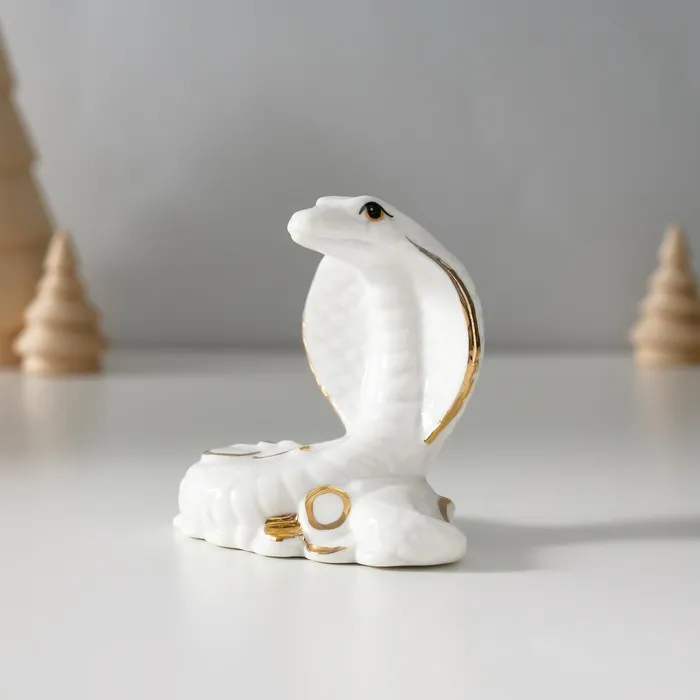 Фигурка керамика «Белая кобра с горкой монет», с золотом, 4.5×8×7.5 см — Характеристики