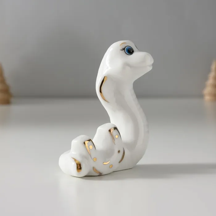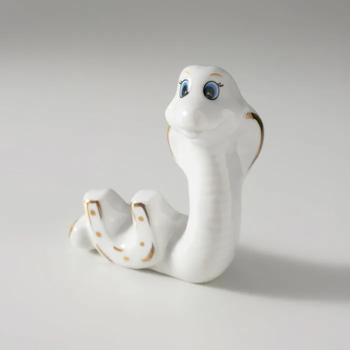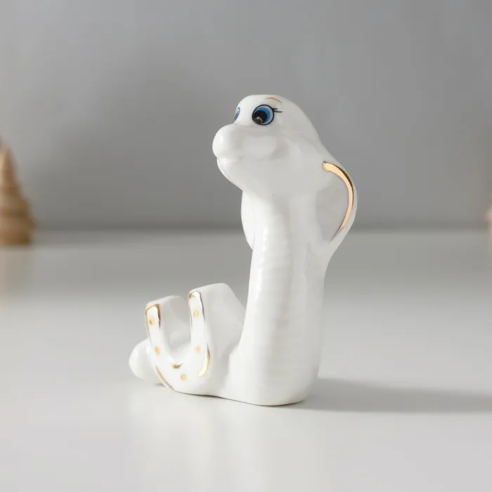 Фигурка керамика «Белая кобра с подковой», с золотом, 2.5×6.5×8 см — Характеристики