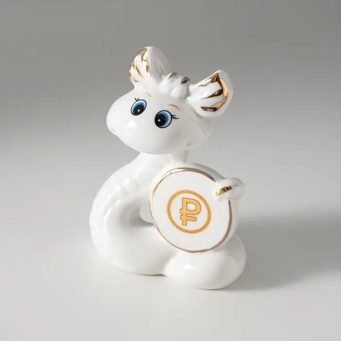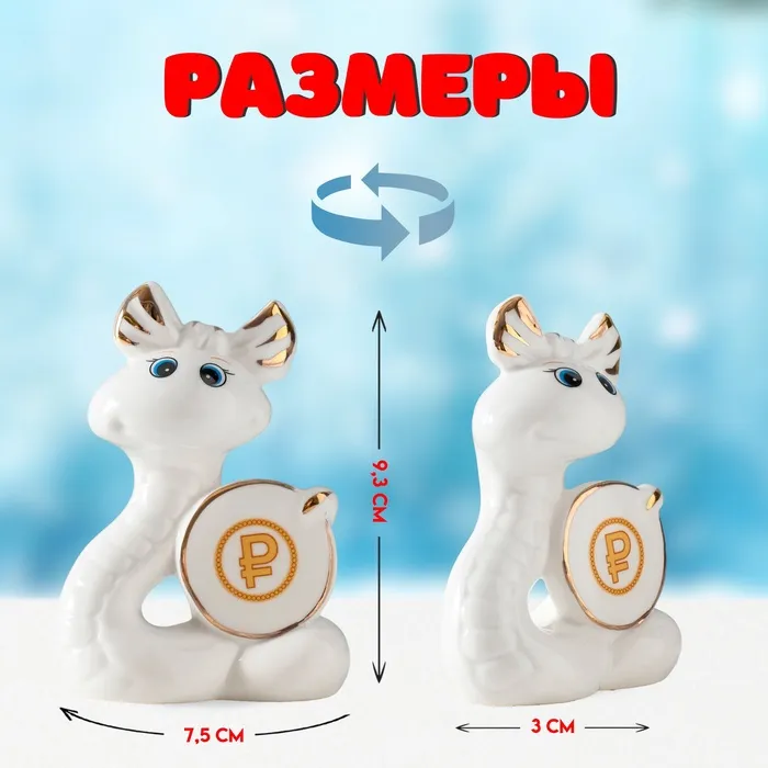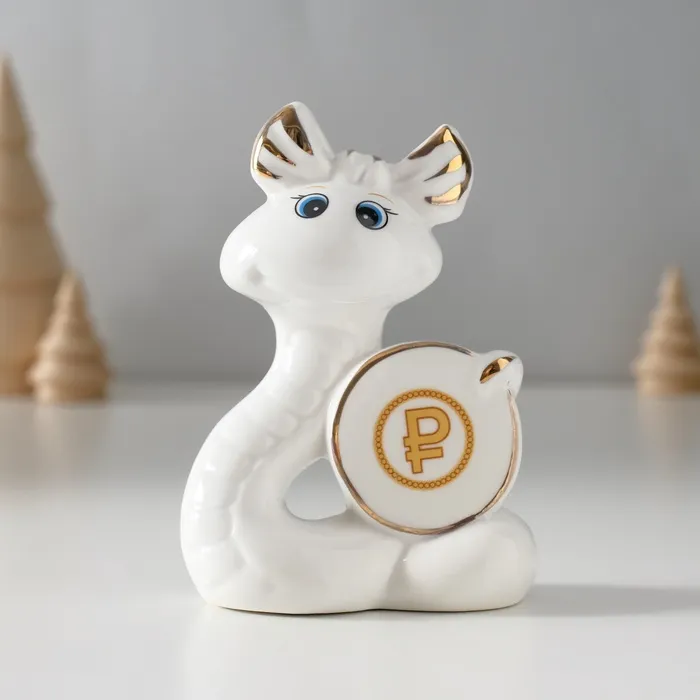 Фигурка керамика «Белая змейка с бантиком, с монеткой $», с золотом, 3×7.5×9.3 см — Характеристики