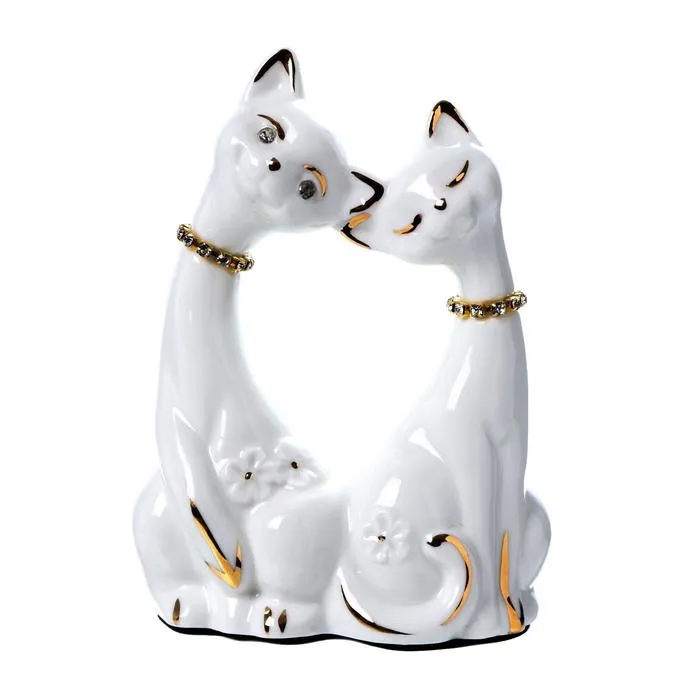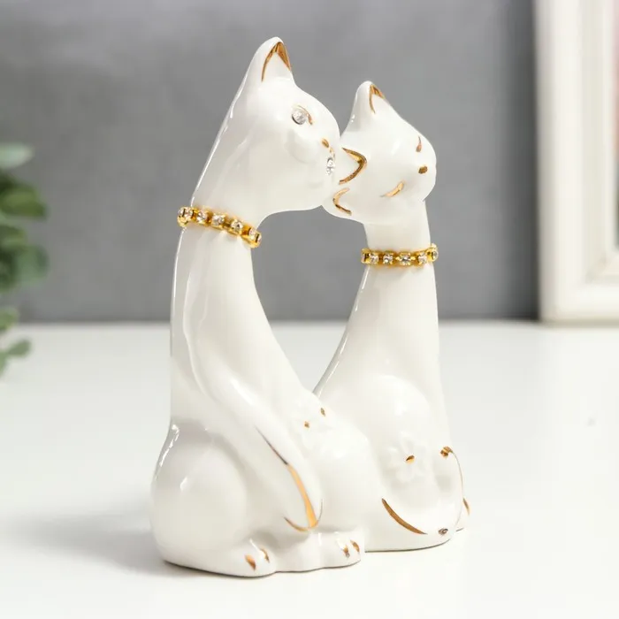 Фигурка керамика «Белые кот и кошка в цветок, ошейник из страз», 12×9×4.5 см — Характеристики