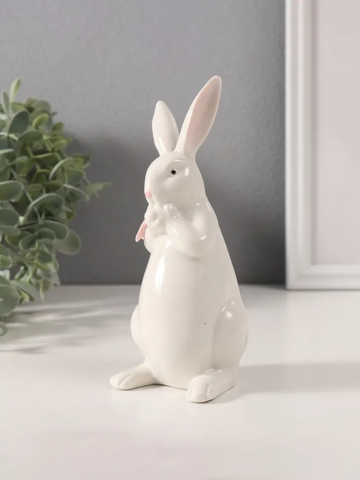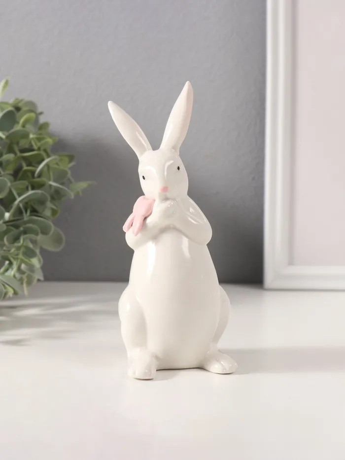 Выбирая этого белого кролика с розовым бантиком, вы выбираете способ сделать свой дом немного уютнее и праздничнее. Пусть он станет маленьким символом радости, который будет согревать вас своим присутствием каждый день.
