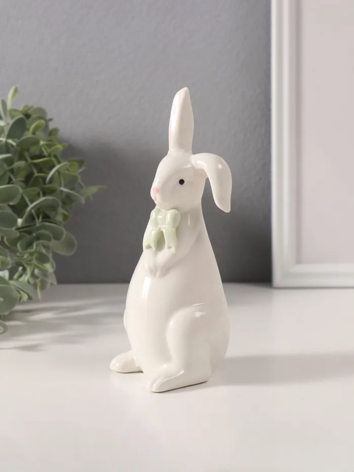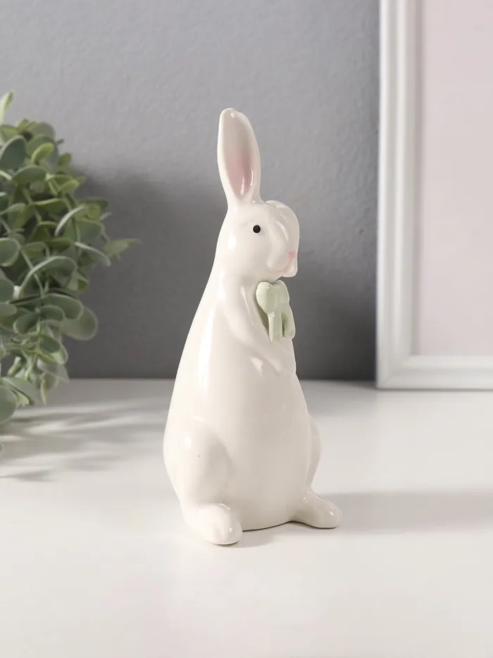 Фигурка керамика «Белый кролик с зелёным бантиком», 6×6.5×16.5 см — Характеристики