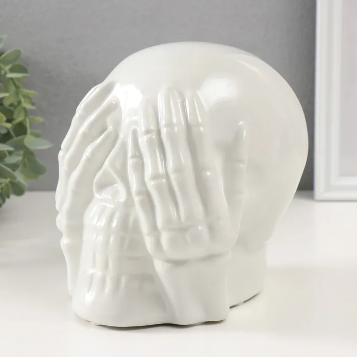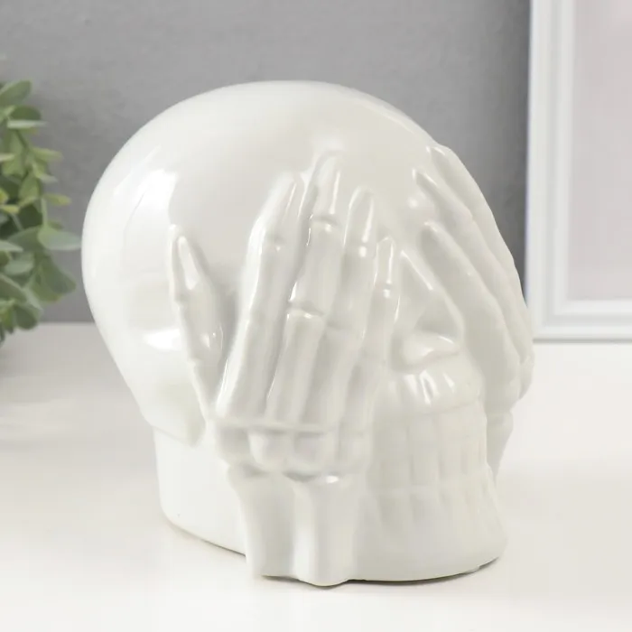 Фигурка керамика «Череп с кистями на глазах», белый, 13.5×14×15 см — Характеристики