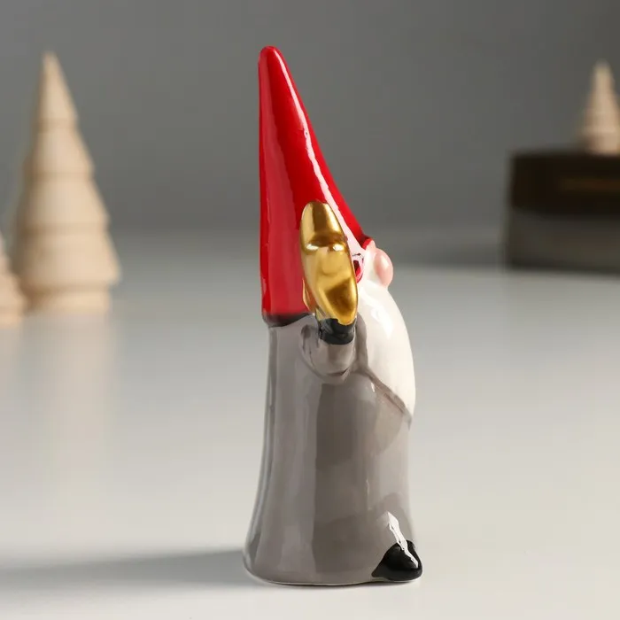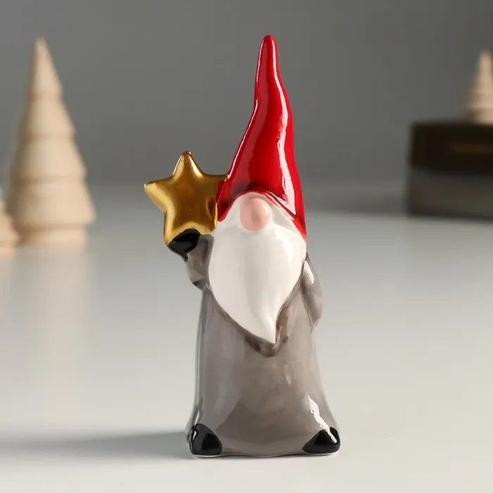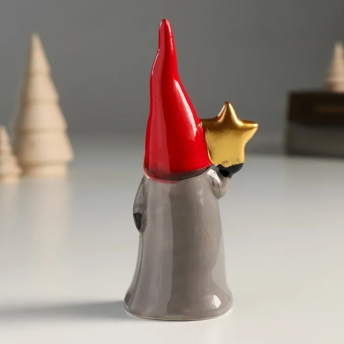 Фигурка керамика «Дед Мороз, серый кафтан, красный колпак, золотая звезда», 12×4×5.5 см — Характеристики
