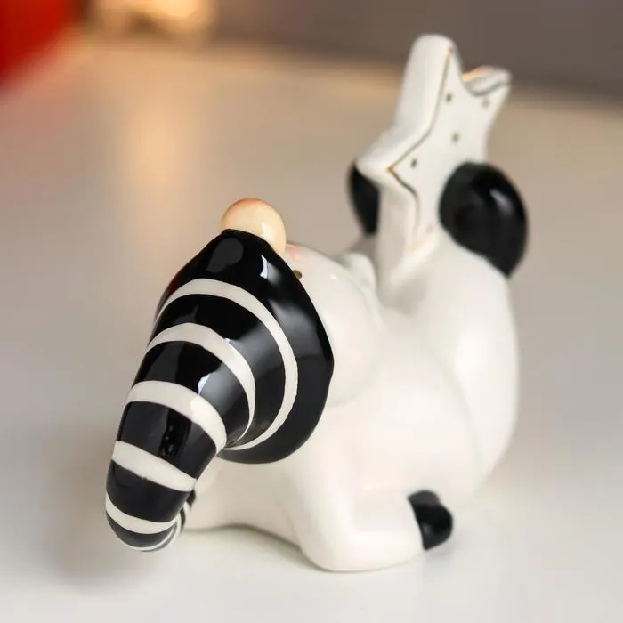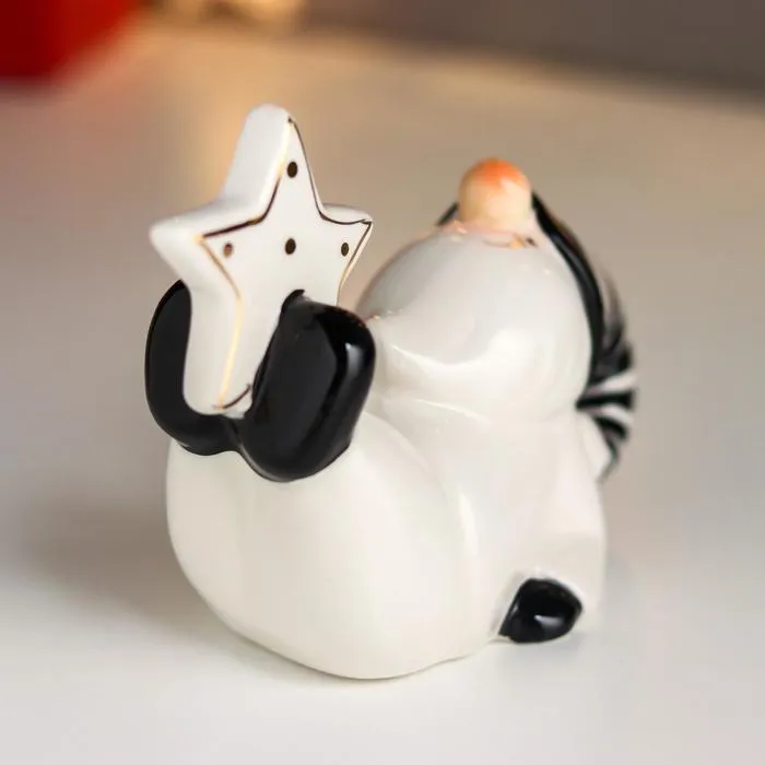 Фигурка керамика «Дедушка Мороз, чёрный полосатый колпак, большая звезда», 9.5×6.4×12.4 см — Характеристики