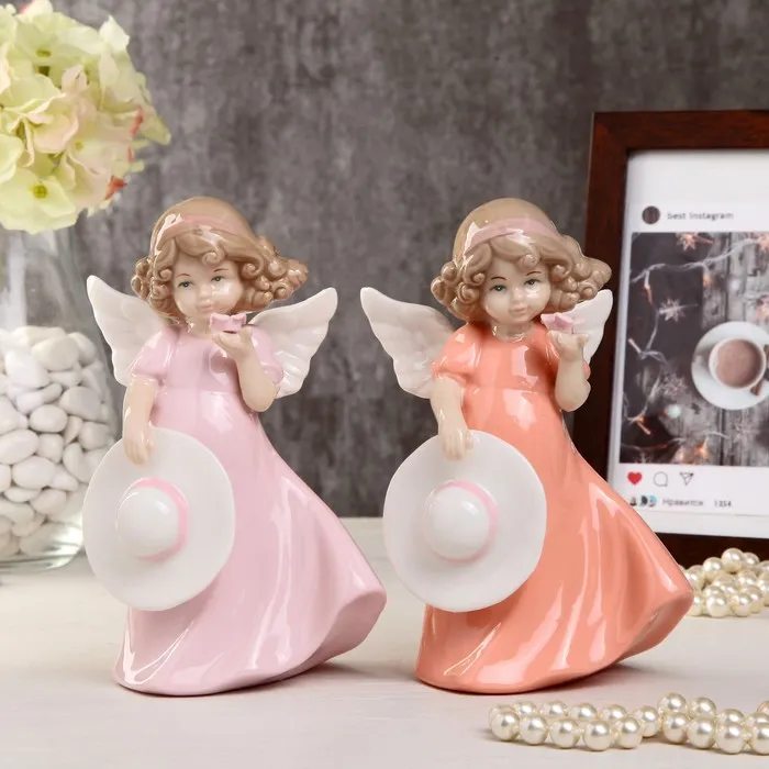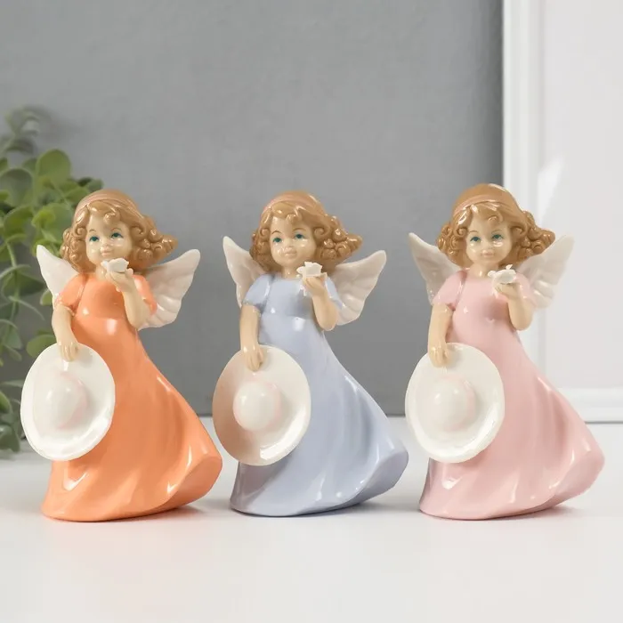 Фигурка керамика «Девочка-ангел в цветном платье с шляпкой», 14×8.5×6.5 см, МИКС — Характеристики