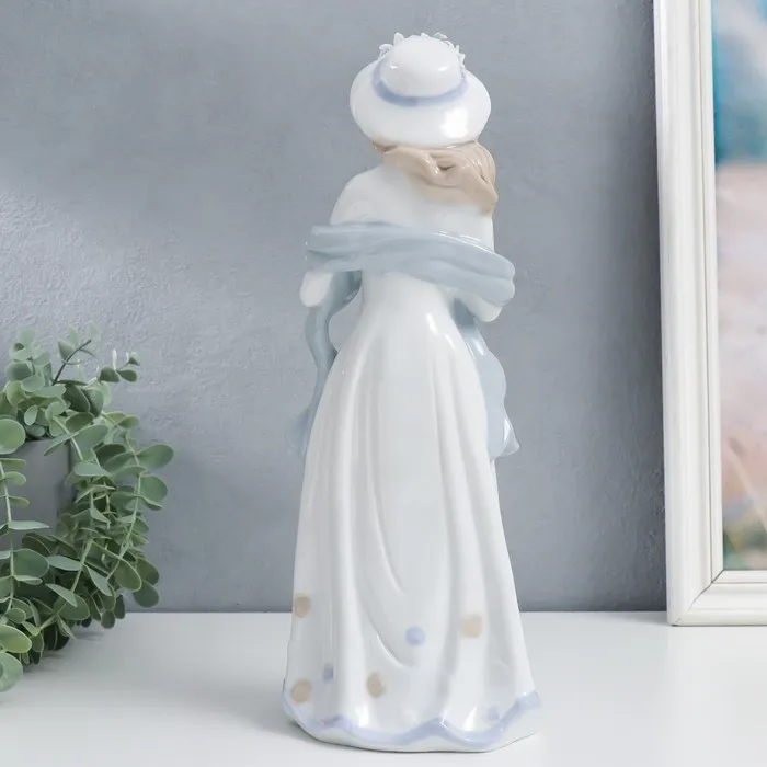 Эта изящная керамическая фигурка станет элегантным дополнением вашего интерьера или сада. Изображение девушки, держащей голубя, символизирует гармонию, мир и красоту. Её бело-голубая цветовая гамма и глазурованная поверхность создают ощущение лёгкости и чистоты, а высота в 31 см делает её заметным акцентом в любом пространстве.