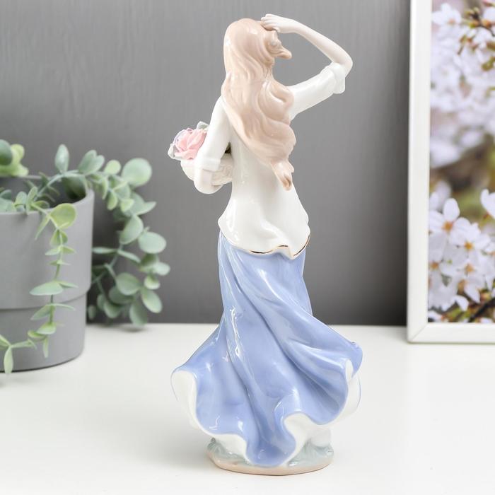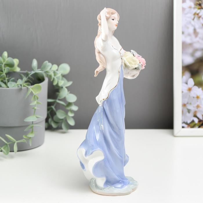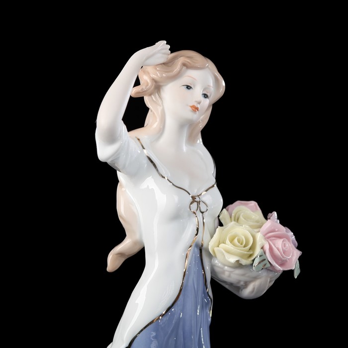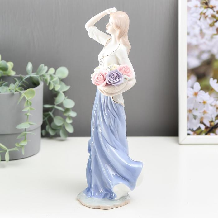 Фигурка керамика «Девушка в голубом с корзиной роз», 30×9×11.5 см — Характеристики