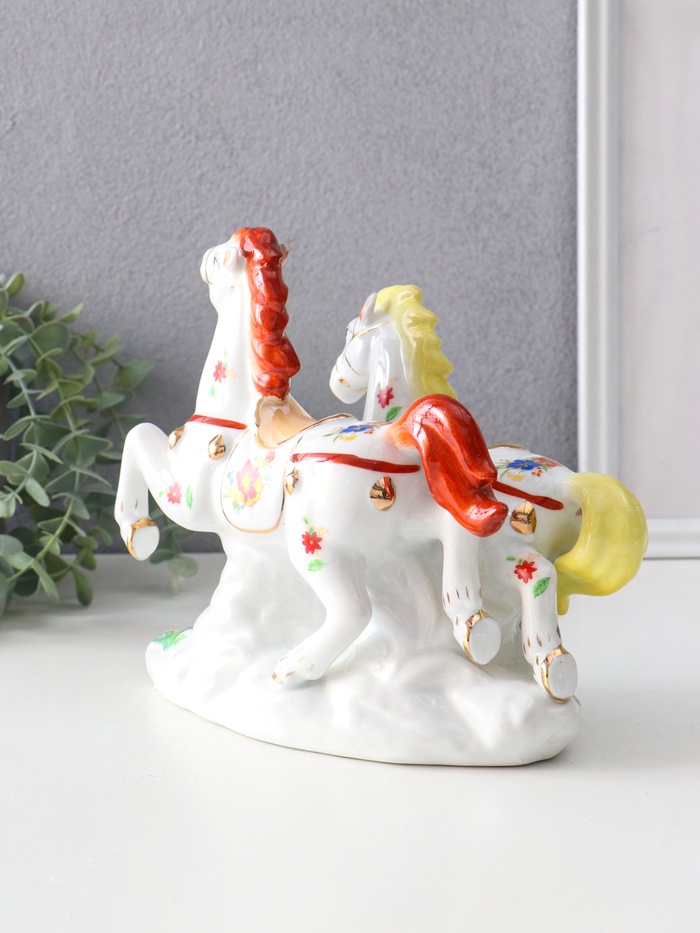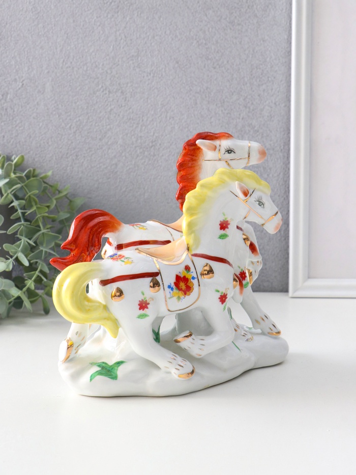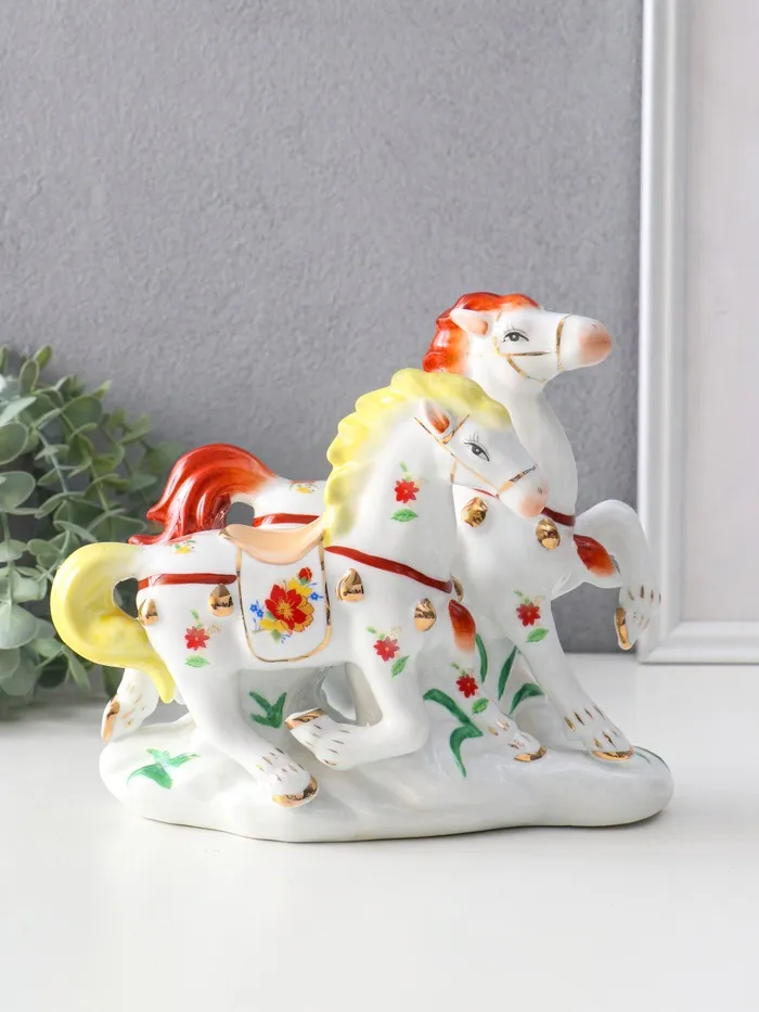 Фигурка керамика «Двойка коней расписные», цветные с золотом, 20×9.8×18 см — Характеристики