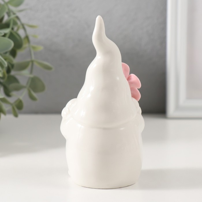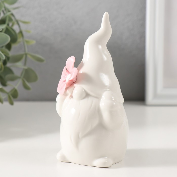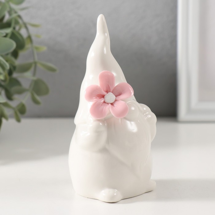 Этот очаровательный керамический гном с розовым цветком привнесёт в ваш дом каплю сказочного волшебства. Выполненный в классическом белом цвете с нежными акцентами, он станет милым украшением интерьера или трогательным подарком для ценителей уютных деталей.