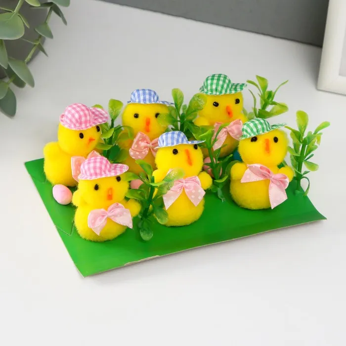 Фигурка пасхальная «Цыпленок в шляпке и тремя яичками», набор 6 шт., 5.5×12.5×18 см