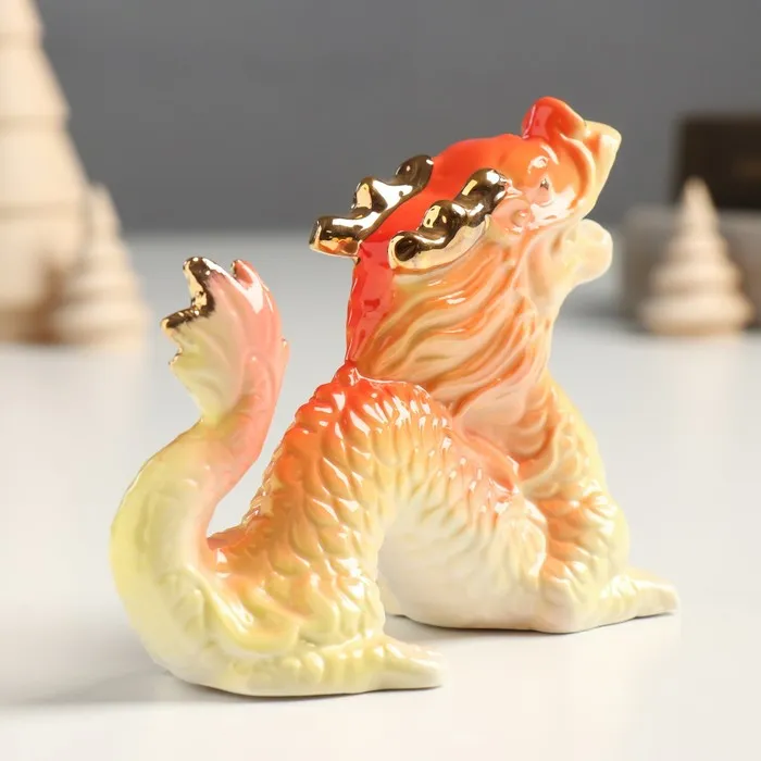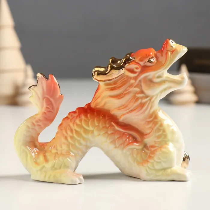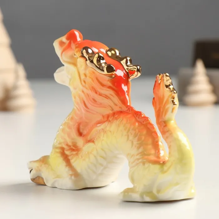 Фигурка керамика «Китайский огненный дракон рычит», с золотом, 5×12×9 см — Характеристики