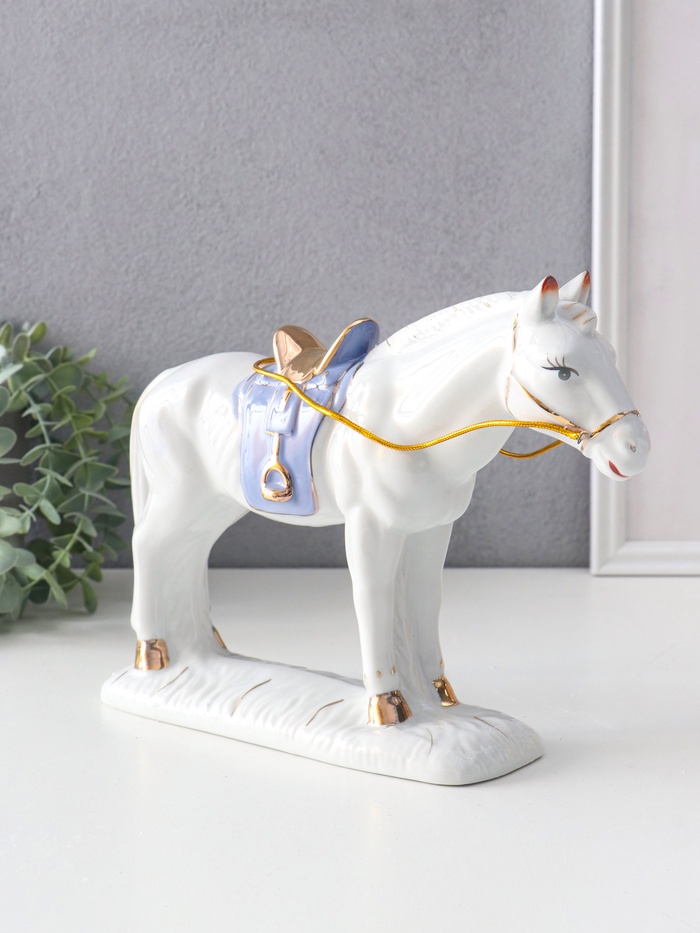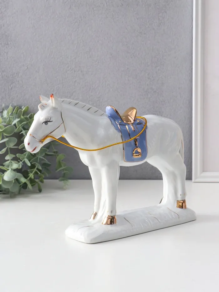 Фигурка керамика «Конь белый с голубым седлом», 25×6.7×19 см — Характеристики