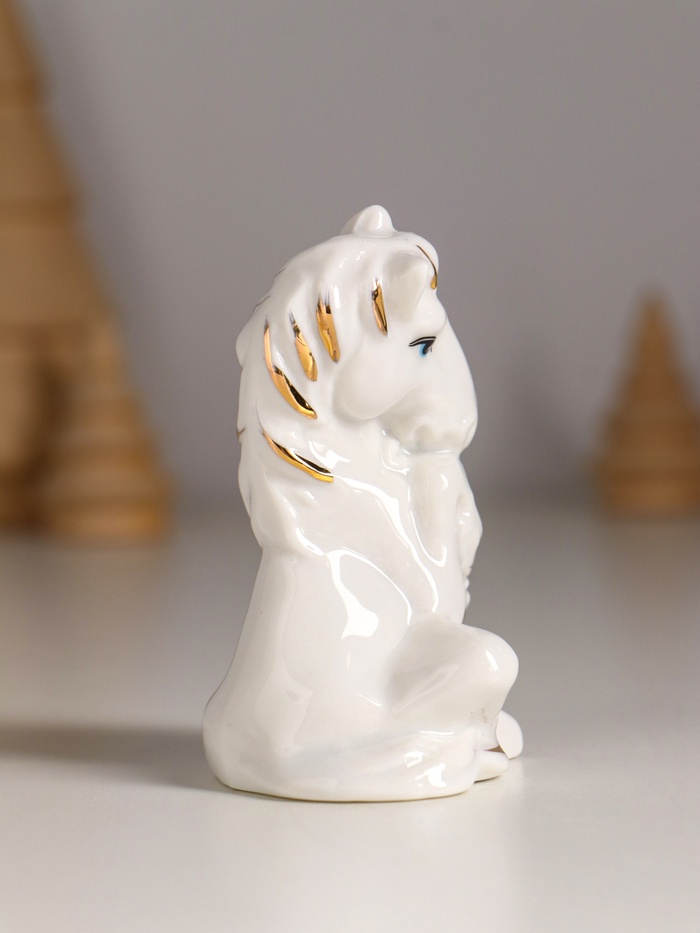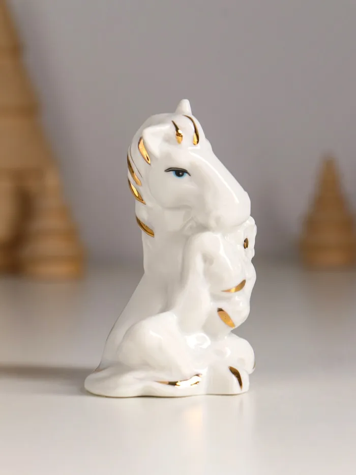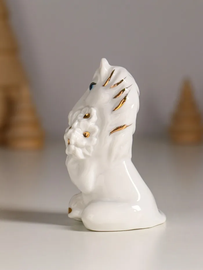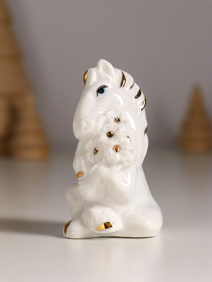 Фигурка керамика «Коняшка с букетом», белый с золотом, 6×4×8 см — Характеристики