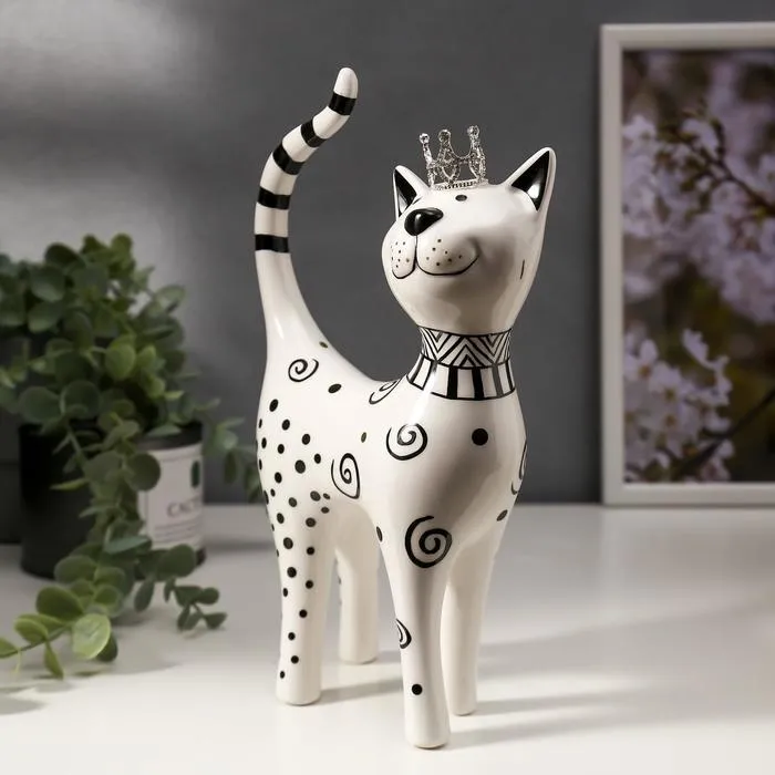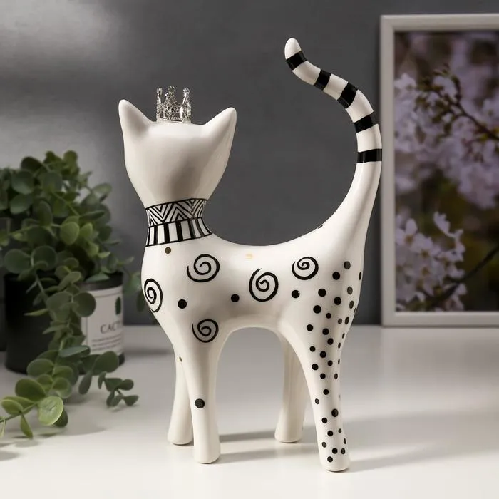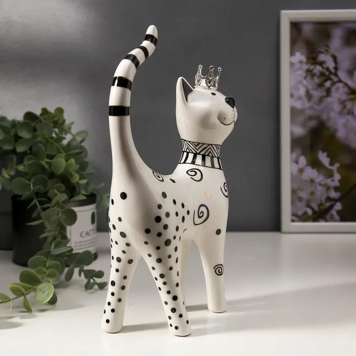 Фигурка керамика «Кошечка в короне, узорная», бело-чёрная с золотом, 23.5×6.5×14.5 см — Характеристики