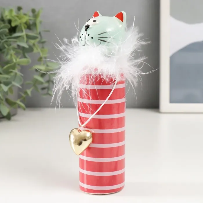Фигурка керамика «Кошечка в мехах с золотым сердечком», мятно-красный, 4×4×15.5 см — Характеристики