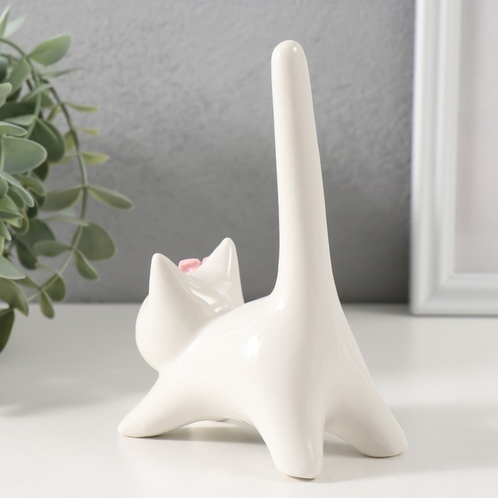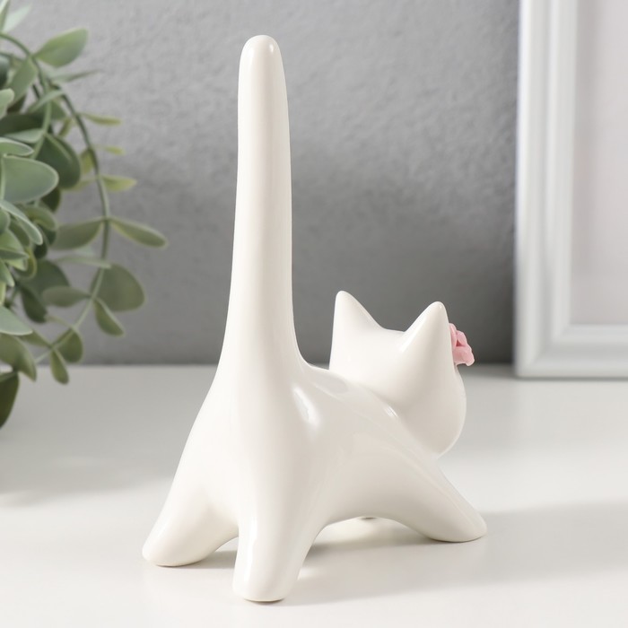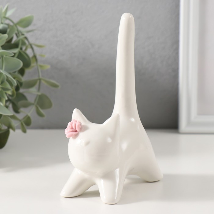 Эта керамическая фигурка белого кота — воплощение нежности и изящества. Длинный изогнутый хвост и аккуратный розовый цветок создают образ ласкового и любознательного питомца. Универсальный дизайн делает фигурку самостоятельным украшением интерьера или трогательным подарком, который найдет место в сердце и на полке.
