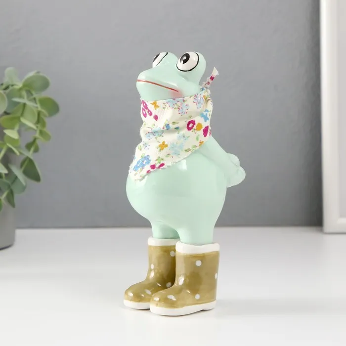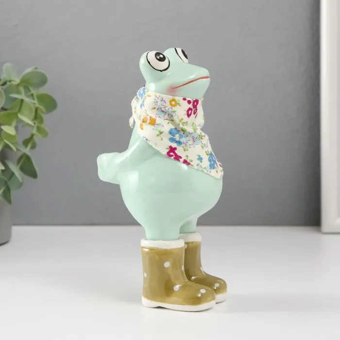 Фигурка керамика «Лягушонок в резиновых сапогах, с косынкой», 8.4×6×16.3 см — Характеристики