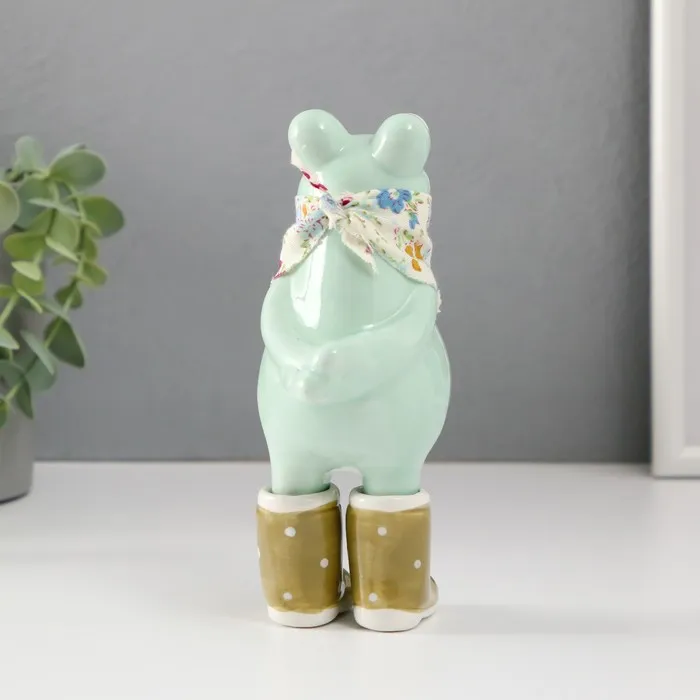 Фигурка керамика «Лягушонок в резиновых сапогах, с косынкой», 8.4×6×16.3 см