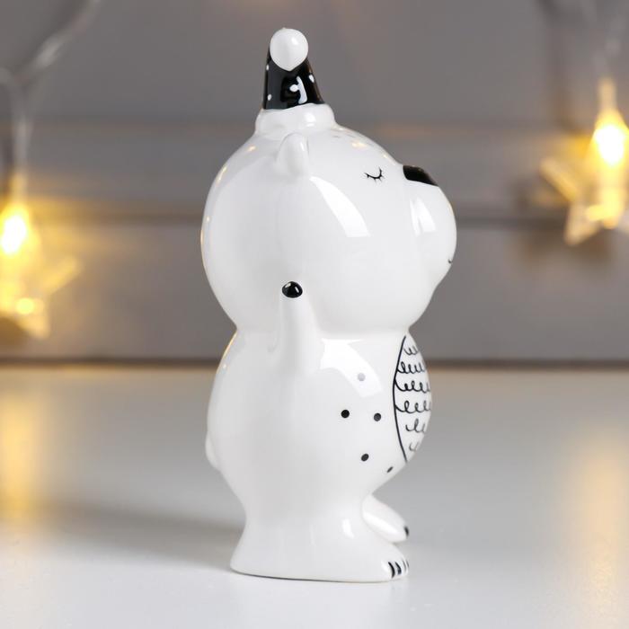 Фигурка керамика «Медвежонок в новогоднем колпаке», белый с золотом, 11×5.5×6.7 см — Характеристики