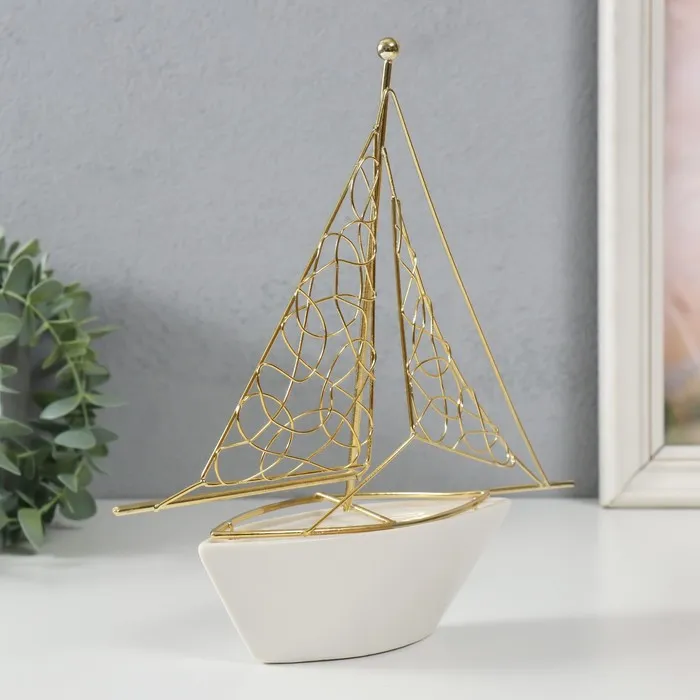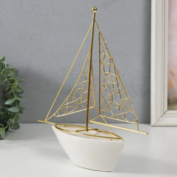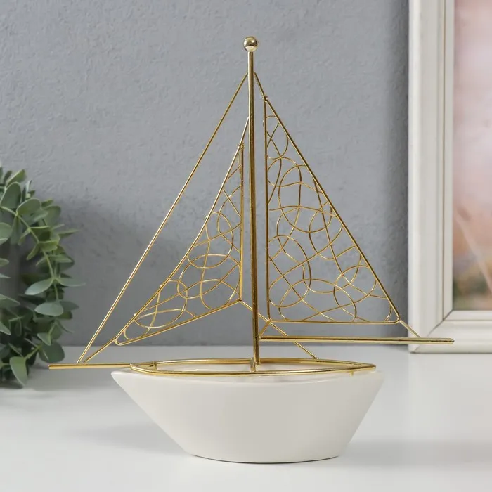 Фигурка керамика, металл «Корабль с парусами», белый с золотом, 22.8×5.9×24 см — Характеристики