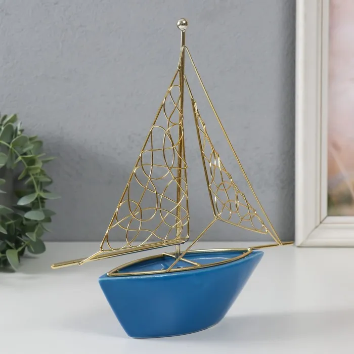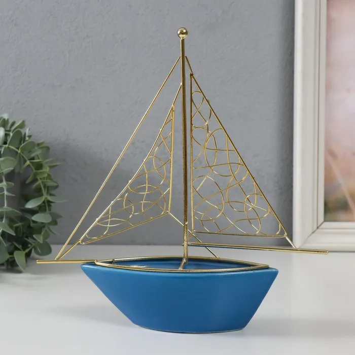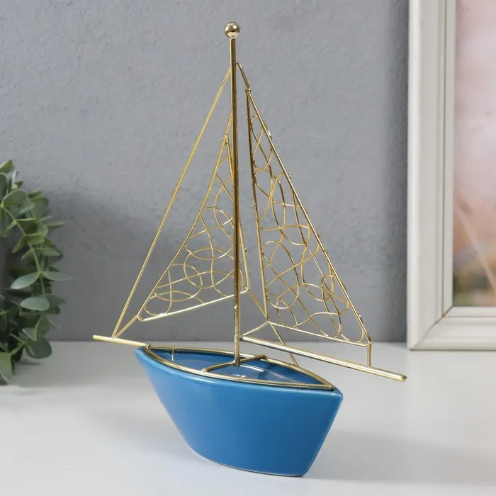 Фигурка керамика, металл «Корабль с парусами», голубой с золотом, 22.8×5.9×24 см — Характеристики