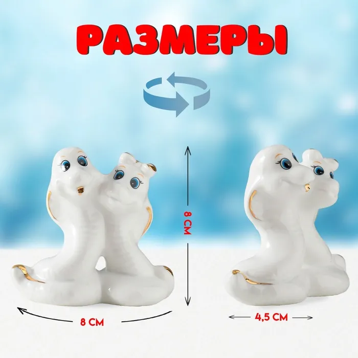 Фигурка керамика «Парочка кобр: любовь», белый с золотом, 4.5×9×8 см — Характеристики