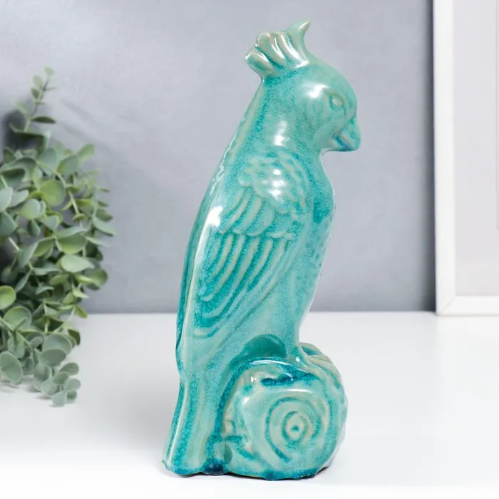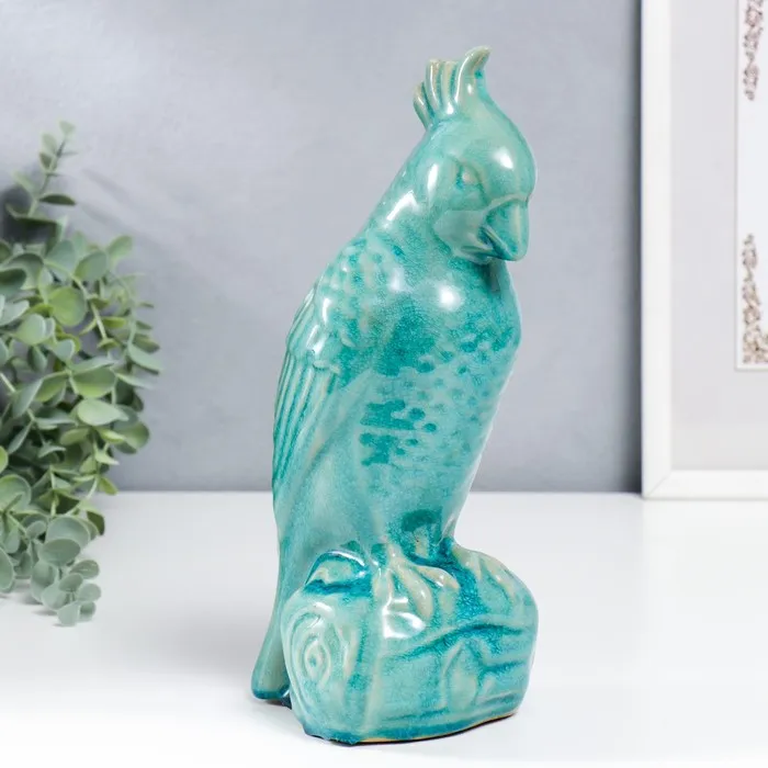 Фигурка керамика «Попугай», бирюзовый шамот, 28×11×12 см — Характеристики