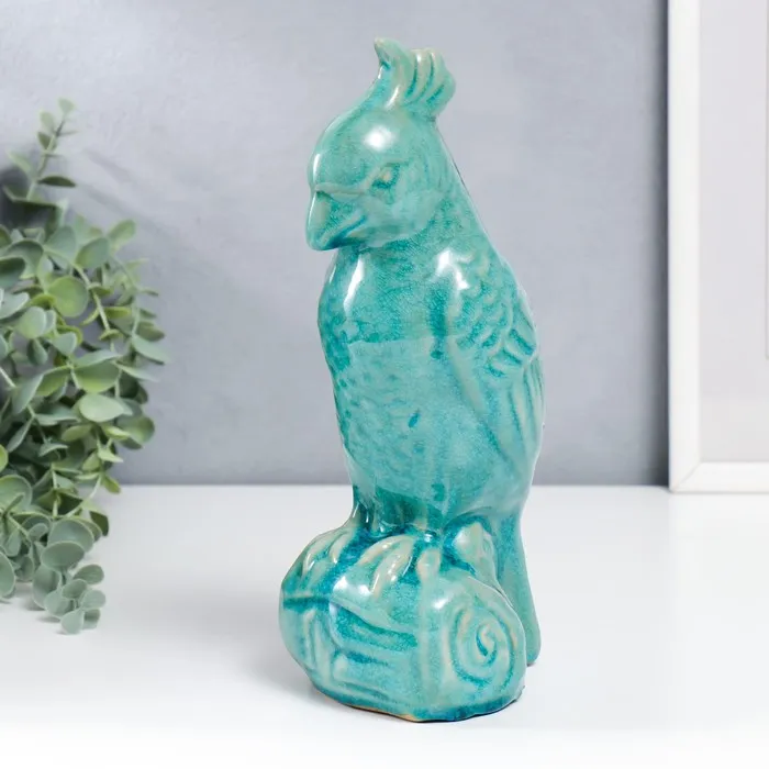 Фигурка керамика «Попугай», бирюзовый шамот, 28×11×12 см