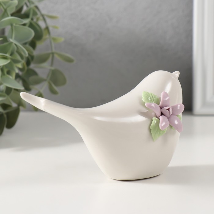Представляем изящное воплощение природной гармонии — керамическую птичку, украшенную нежным сиреневым цветком. Эта компактная фигурка размером 12.4×5×6.7 см станет идеальным дополнением для любого интерьера, привнося в пространство атмосферу уюта и весенней свежести. Белый цвет керамики подчёркивает чистоту образа, а яркий акцент сиреневого цветка добавляет изделию особой выразительности.