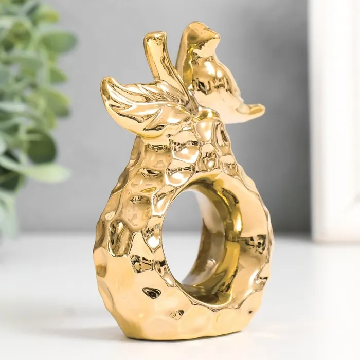 Фигурка керамика «Птица на груше», под золото, кольцо для салфеток, 6.8×3.7×10.3 см — Характеристики