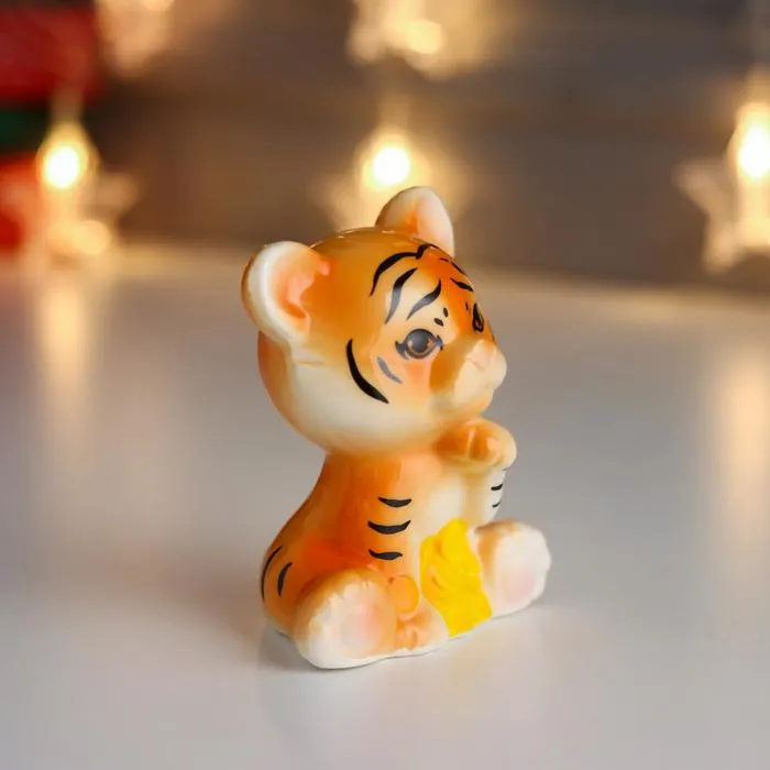 Представляем очаровательного рыжего тигрёнка, который словно сошёл с картинки о дикой природе. Этот маленький хранитель удачи и благополучия размером 8×6.4×5 см станет ярким акцентом в вашем интерьере или трогательным подарком для близких. Выполненный из высококачественной керамики, он сочетает в себе теплоту оранжевых и коричневых оттенков с нежной текстурой материала. В лапах тигрёнок держит монетки — символ процветания и финансового благополучия.