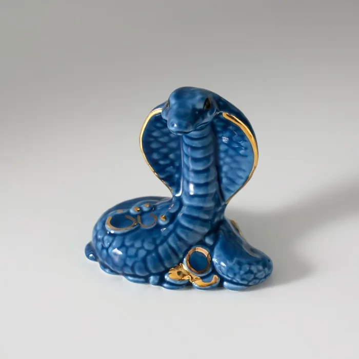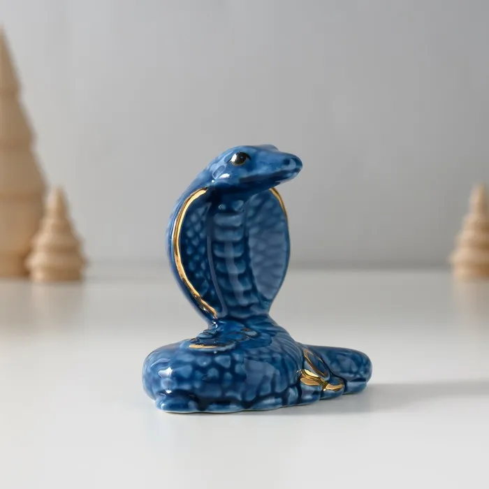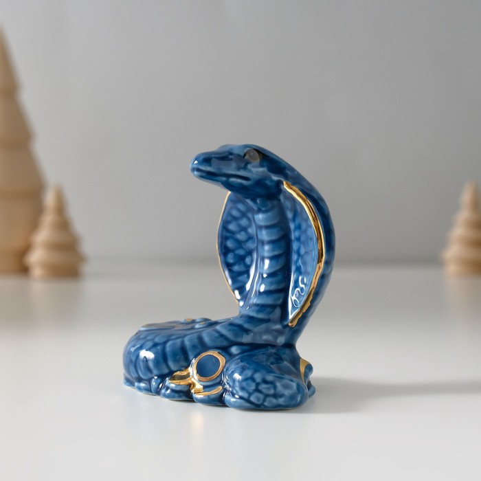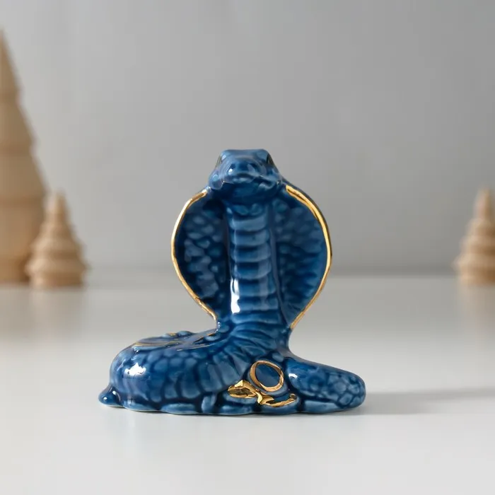 Фигурка керамика «Синяя кобра с горкой монет», с золотом, 4.5×8×7.5 см — Характеристики