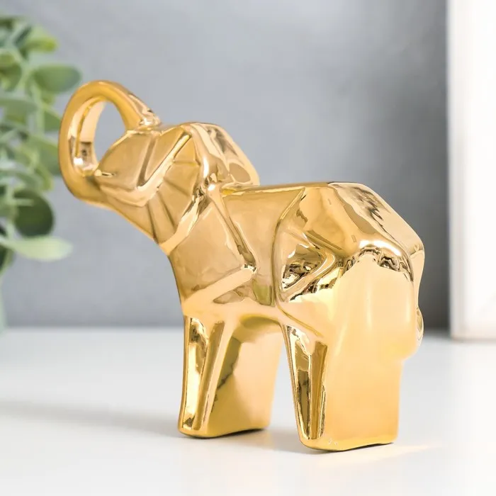 Слон, символизирующий мудрость, силу и благополучие, представлен в современной интерпретации с элементами оригами. Его размеры — 14×3.5×10 см — делают его универсальным решением для украшения полок, столов или каминных зон. Благодаря высококачественной керамике изделие отличается долговечностью и устойчивостью к повреждениям.